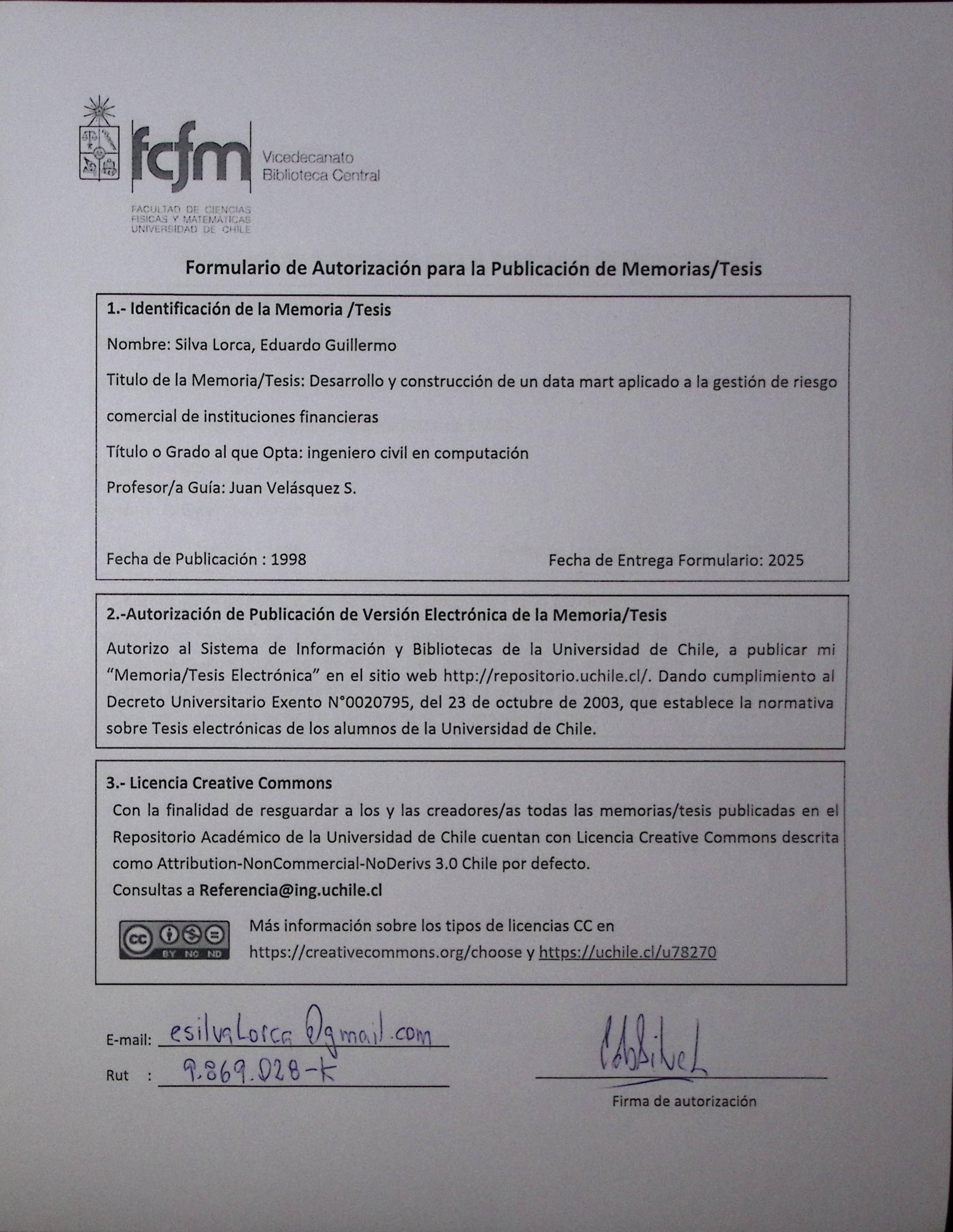 | Título | dc.title | Desarrollo y construcción de un data mart aplicado a la gestión de riesgo comercial de instituciones financieras | es_ES |